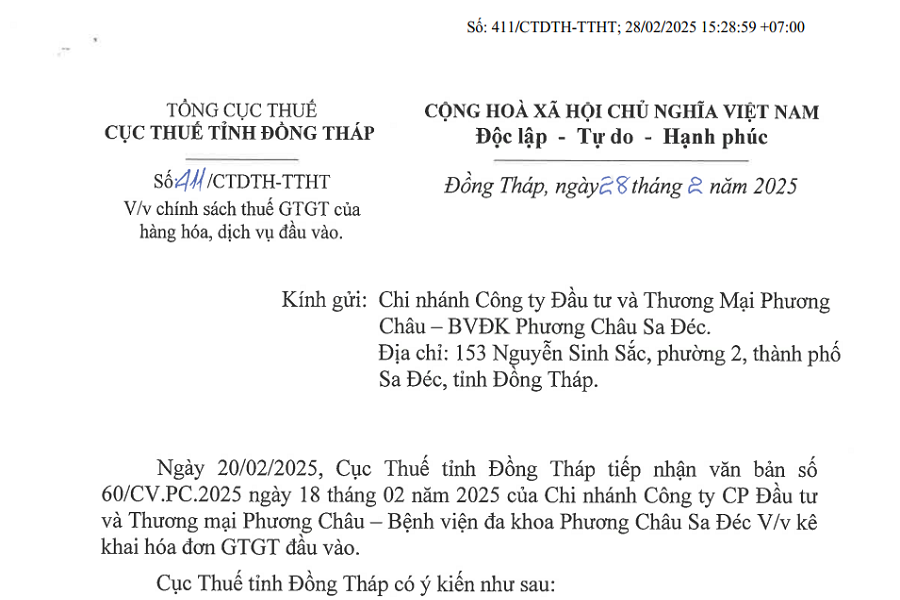TỔNG CỤC THUẾ CỤC THUẾ TỈNH ĐỒNG THÁP Số: 411/CTDTH-TTHT V/v chính sách thuế GTGT của hàng hóa, dịch vụ đầu vào. CỘNG HÒA XÃ HỘI CHỦ NGHĨA VIỆT NAM